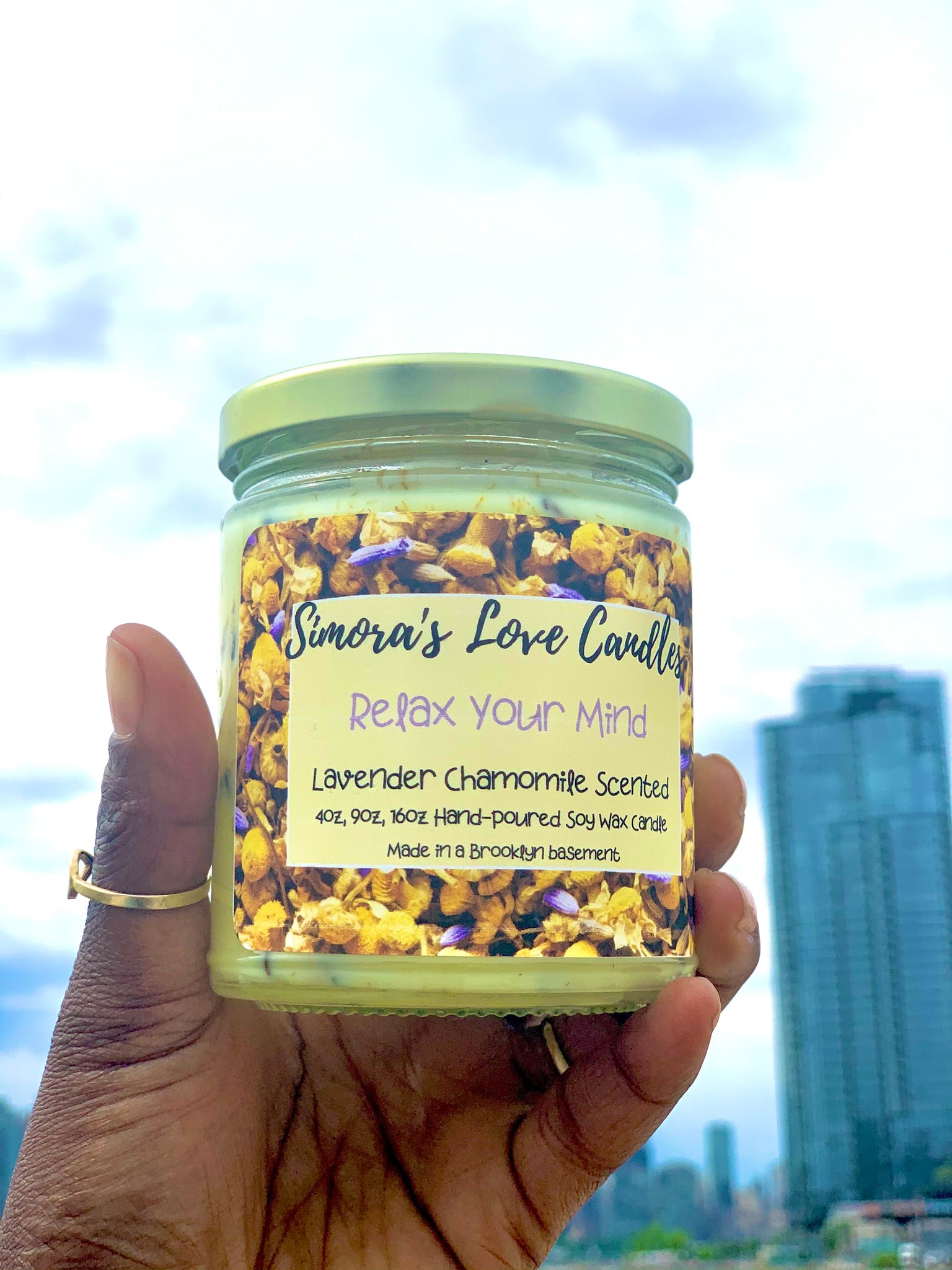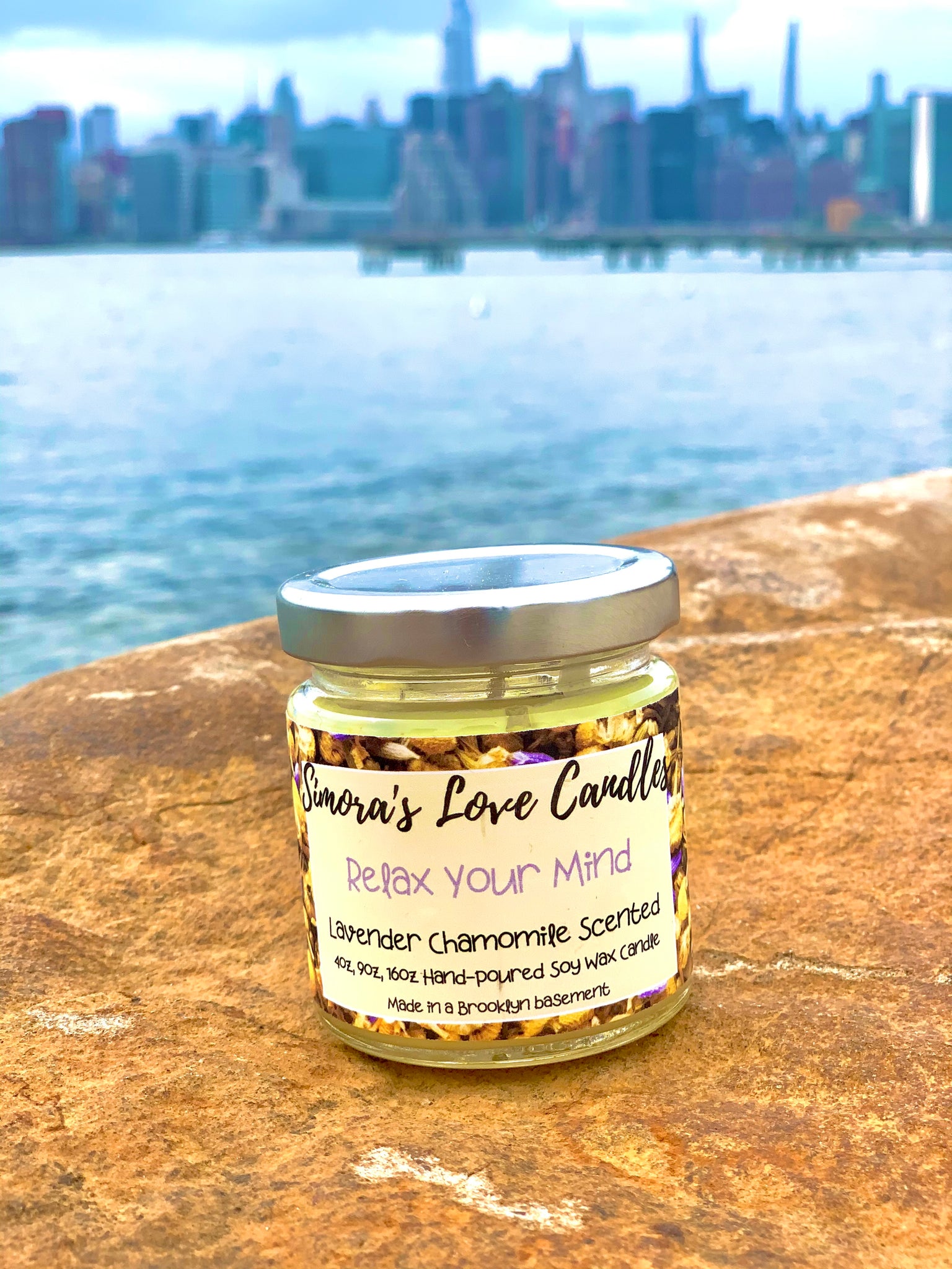 A soothing light herbal fragrance with fresh lavender and chamomile petals infused. This aromatherapy candle is sure to do its job. If you have trouble with sleeping or are having a restless night the lavender & chamomile relaxes the mind and body to promote a better sleep.  So after a long stressful day burn this candle a hour before sleep to set the body's mood.
